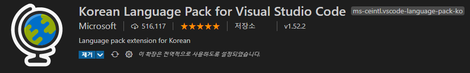 - 한국어버전으로 VS code를 사용할 수 있도록 해주는 플러그인
