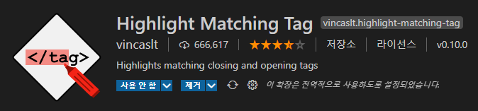 - 매칭되는 태그에 하이라이트 표시를 해줌